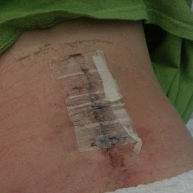 Dr. Sun had told me that he would have to cut as high us as Nathaniel's shoulder blades, so I was THRILLED to see how small of a cut was actually made. I guess it is all relative.